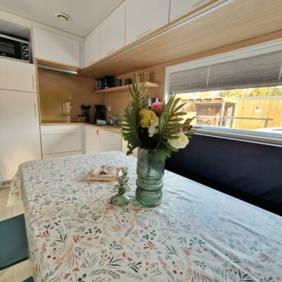 Unser Mobilheim am Murner See bietet Ihnen ein Hottube, Kleinkinderausstattung, WLAN und eine Hotelausstattung. Beide Bäder sind mit Dusche und WC. Im Wohnraum warten eine gemütliche Couch, der Esstisch und die Küche auf Sie. Handtücher & viele Extras, wie z.B. Hausschuhe, Zahnbürste, Kaffee & Tee, Begrüßungsgetränk sind im Preis enthalten. Bei uns erhalten Sie ausschließlich hochwertige Handtücher & Bettwäsche. Im Badezimmer wird es Ihnen vom Föhn bis zu Duschgel & Shampoo an nichts fehlen.